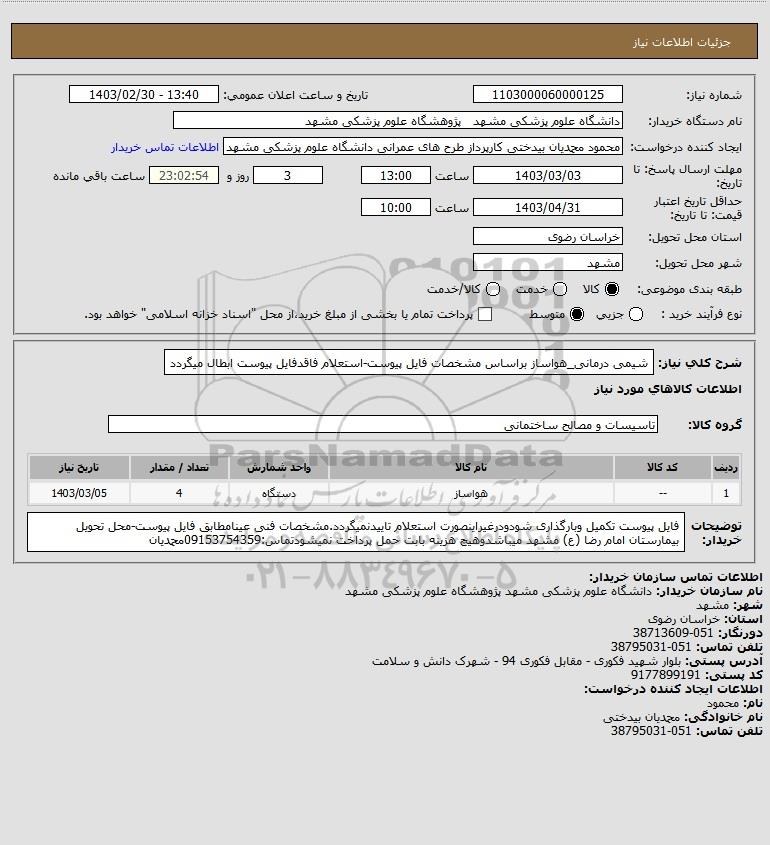نام دستگاه خریدار:دانشگاه علوم پزشکی مشهد پژوهشگاه علوم پزشکی مشهد