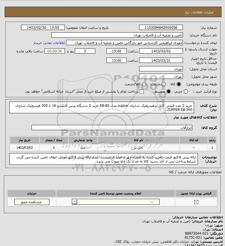 نام دستگاه خریدار:تامین و تصفیه آب و فاضلاب تهران