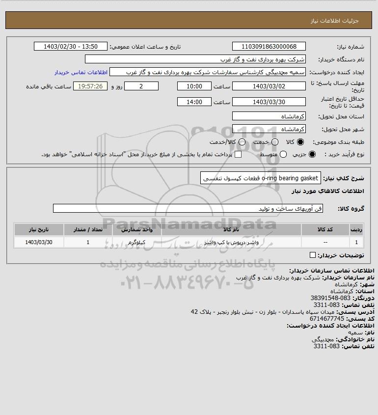 استعلام o-ring bearing gasket قطعات کپسول تنفسی, استعلام o-ring bearing gasket قطعات کپسول تنفسی