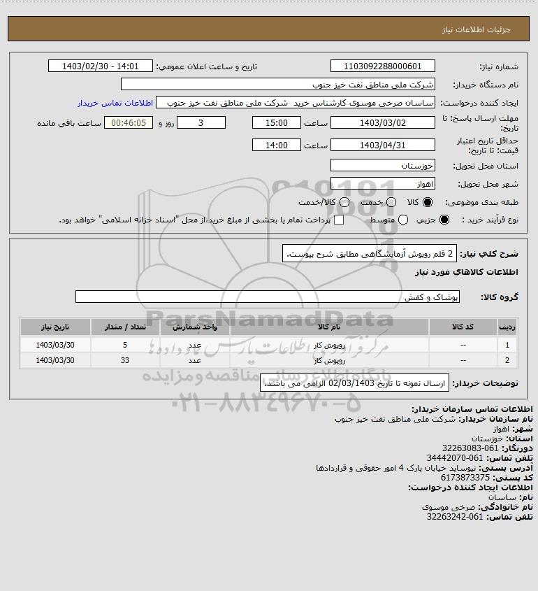 استعلام 2 قلم روپوش آزمایشگاهی مطابق شرح پیوست., استعلام 2 قلم روپوش آزمایشگاهی مطابق شرح پیوست.