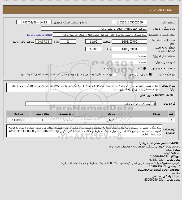 نام دستگاه خریدار:شرکت خطوط لوله و مخابرات نفت ایران