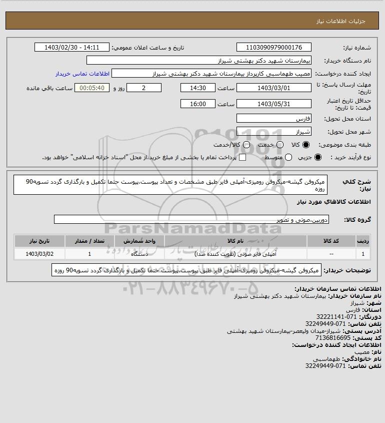 نام دستگاه خریدار:بیمارستان شهید دکتر بهشتی شیراز