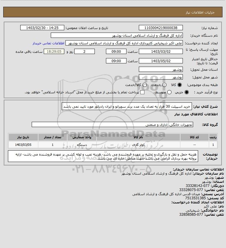 نام دستگاه خریدار:اداره کل فرهنگ و ارشاد اسلامی استان بوشهر