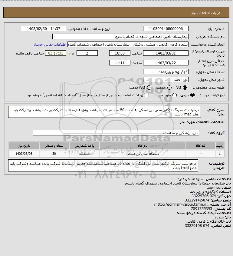 نام دستگاه خریدار:بیمارستان تامین اجتماعی شهدای گمنام یاسوج