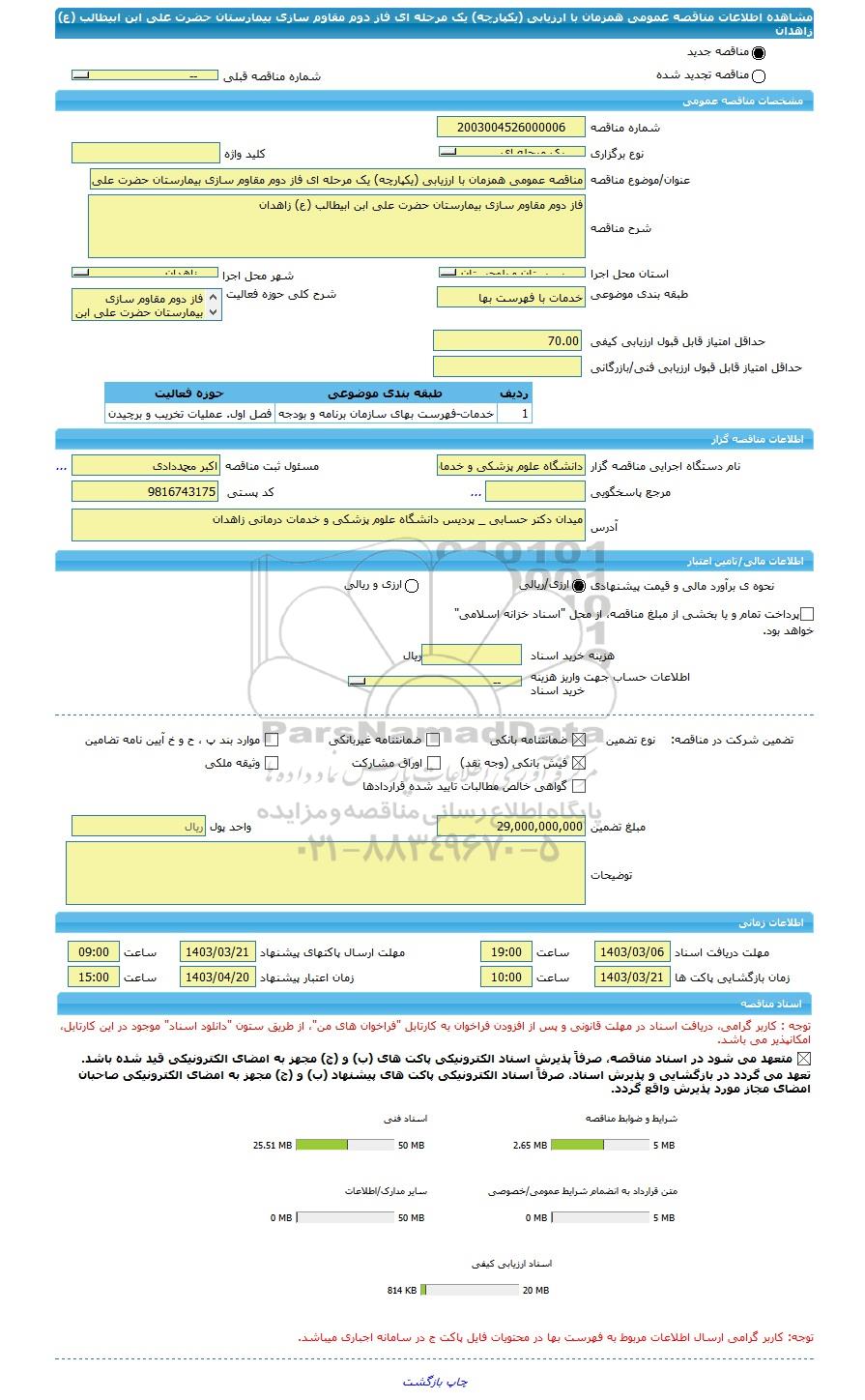| مبلغ تضمین | 29,000,000,000 | واحد پول | ریال |