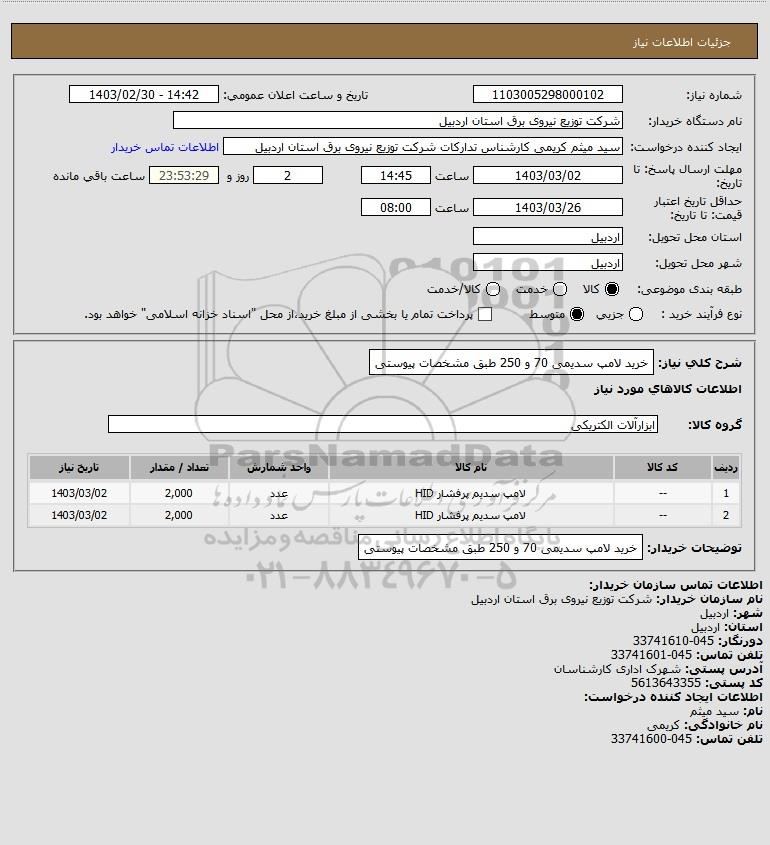شرح کلی نیاز: خرید لامپ سدیمی 70 و 250 طبق مشخصات پیوستی