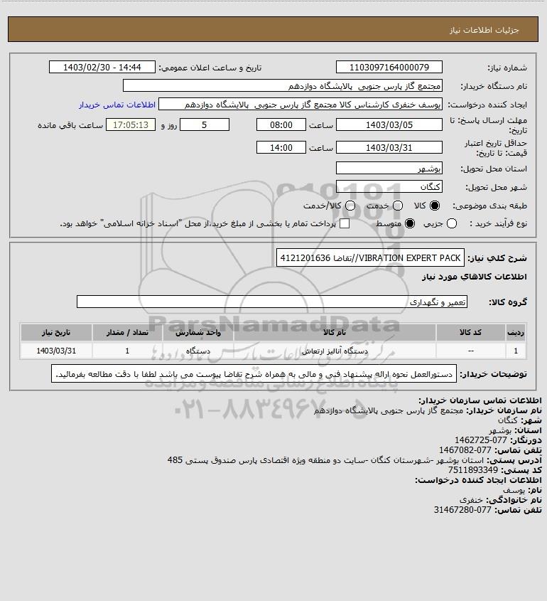 شرح کلی نیاز: VIBRATION EXPERT PACK//تقاضا 4121201636