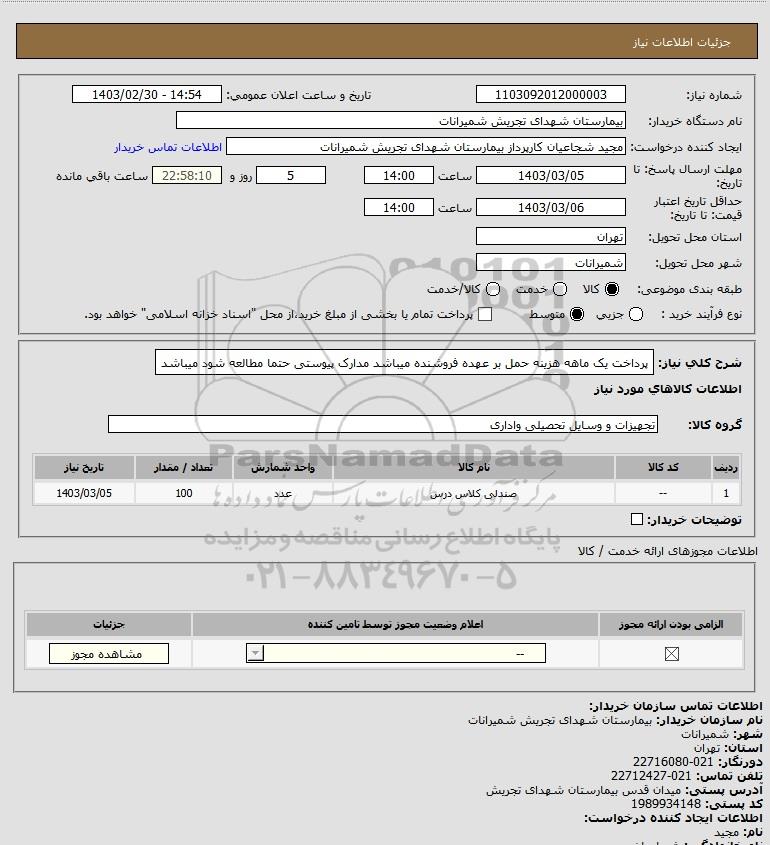 نام دستگاه خریدار:بیمارستان شهدای تجریش شمیرانات