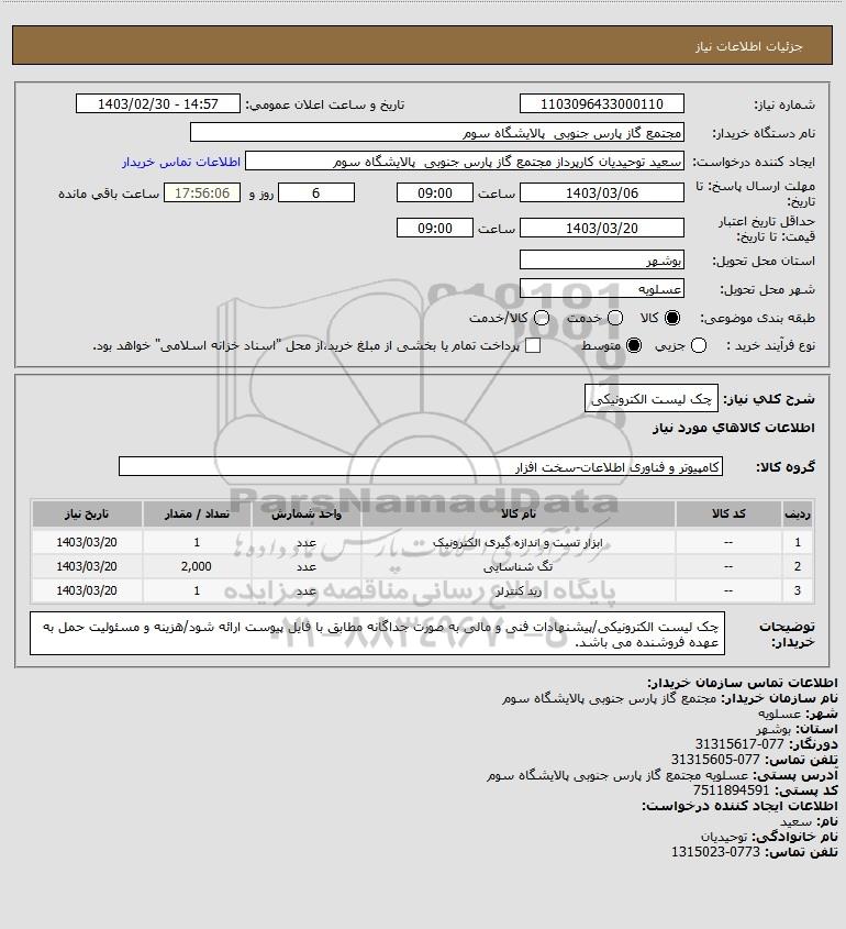 توضیحات خریدار:چک لیست الکترونیکی/پیشنهادات فنی و مالی به صورت جداگانه مطابق با فایل پیوست ارائه شود/هزینه و مسئولیت حمل به عهده فروشنده می باشد.