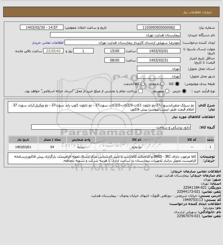 | 1 | -- | نخ بخیه | بسته | 54 | 1403/03/01 |