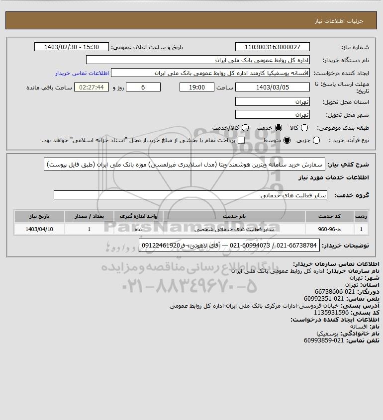 نام دستگاه خریدار:اداره کل روابط عمومی بانک ملی ایران