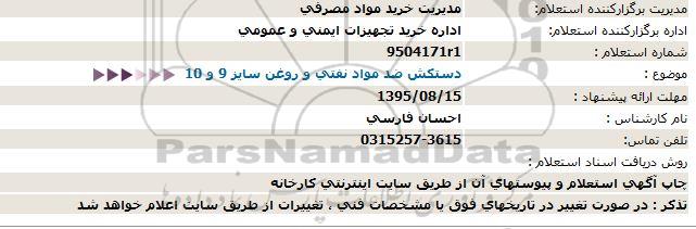 اداره برگزارکننده استعلام: اداره خرید تجهیزات ایمنی و عمومی