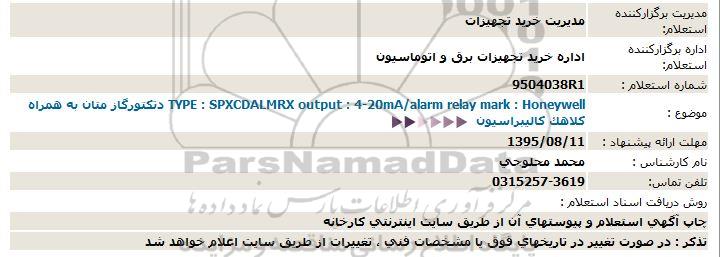 اداره برگزارکننده استعلام:     اداره خرید تجهیزات برق و اتوماسیون
