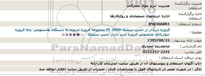 اداره برگزارکننده استعلام: اداره خریدمواد شیمیایی و روانکارها