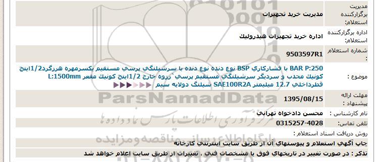 اداره برگزارکننده استعلام: اداره خرید تجهیزات هیدرولیک