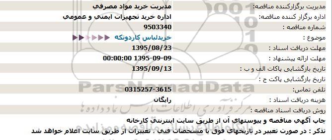 اداره برگزارکننده مناقصه: اداره خرید تجهیزات ایمنی و عمومی