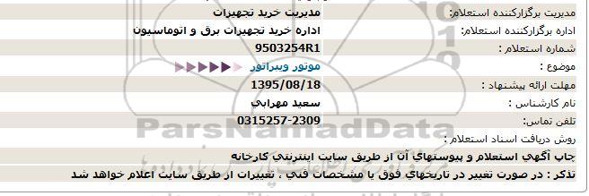اداره برگزارکننده استعلام: اداره خرید تجهیزات برق و اتوماسیون