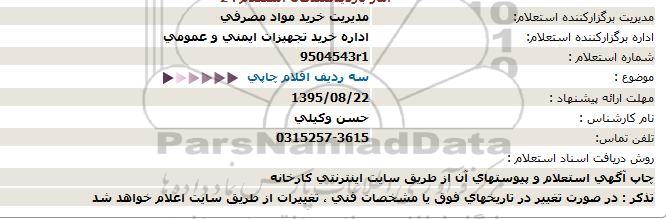 اداره برگزارکننده استعلام: اداره خرید تجهیزات ایمنی و عمومی