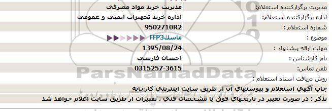 اداره برگزارکننده استعلام: اداره خرید تجهیزات ایمنی و عمومی