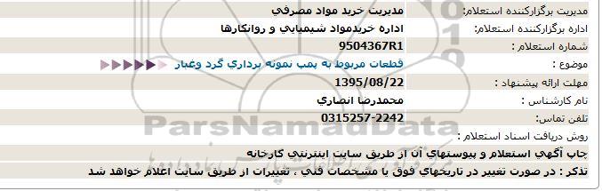 اداره برگزارکننده استعلام: اداره خریدمواد شیمیایی و روانکارها