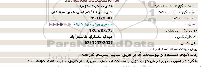 اداره برگزارکننده استعلام: اداره خرید اقلام عمومی و استاندارد