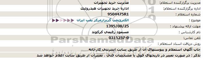 استعلام الکتروپمپ گریز از مرکز پمپ ایران , استعلام, استعلام الکتروپمپ گریز از مرکز پمپ ایران