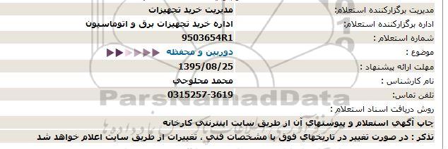 اداره برگزارکننده استعلام: اداره خرید تجهیزات برق و اتوماسیون