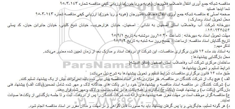 مناقصه شبکه جمع آوری انتقال فاضلاب فلاورجان از کلیه افراد متخصص و شرکتها واجد شرایط دعوت به عمل میآید در مناقصه با کد خبرگزاری پارس نماد: 751337 شرکت نمایند.