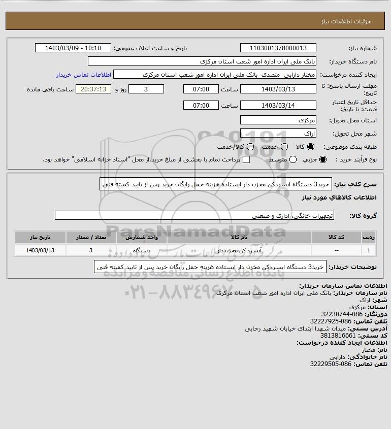 نام دستگاه خریدار:بانک ملی ایران اداره امور شعب استان مرکزی