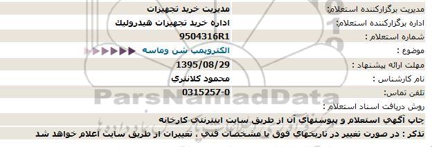 اداره برگزارکننده استعلام: اداره خرید تجهیزات هیدرولیک