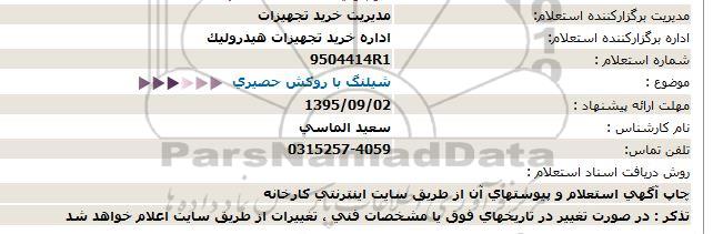 اداره برگزارکننده استعلام: اداره خرید تجهیزات هیدرولیک