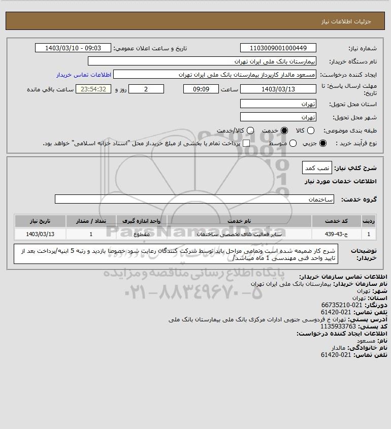 نام دستگاه خریدار:بیمارستان بانک ملی ایران تهران