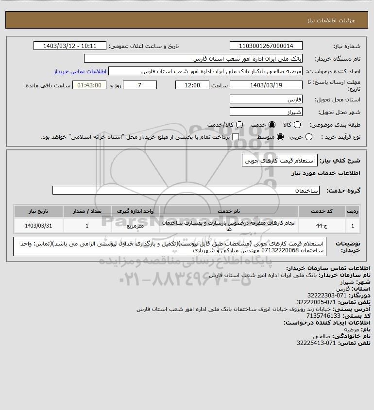 شرح کلی نیاز: استعلام قیمت کارهای چوبی