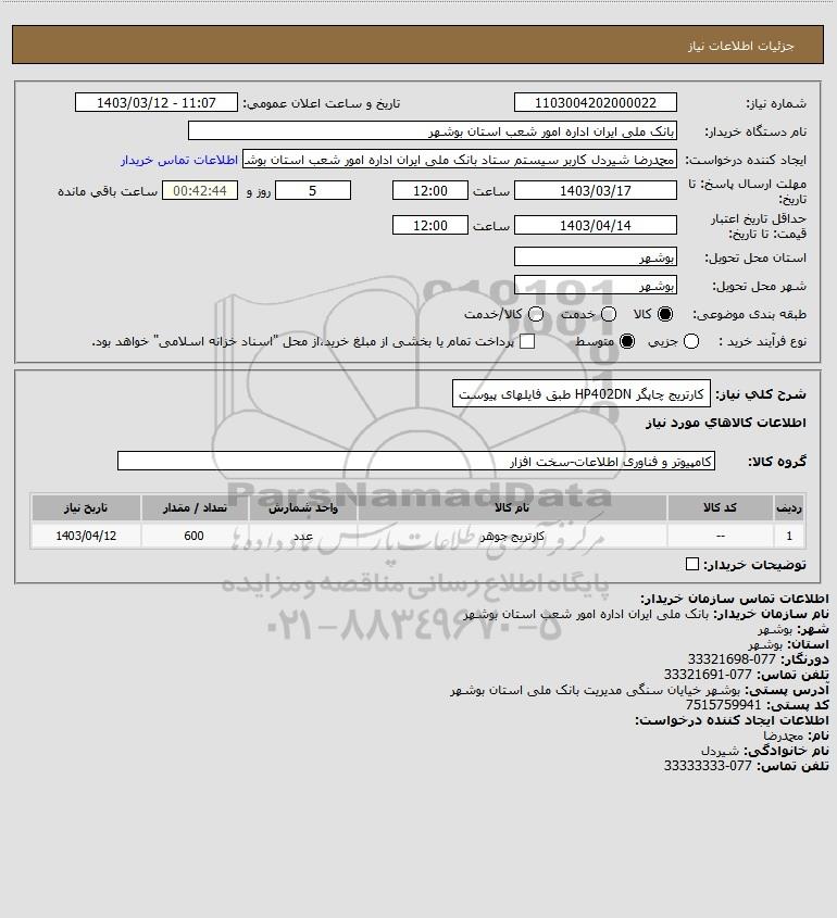 شرح کلی نیاز: کارتریج چاپگر HP402DN طبق فایلهای پیوست