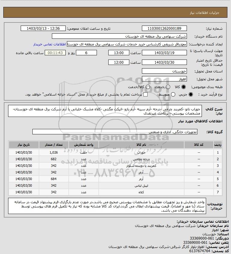 نام دستگاه خریدار:شرکت سهامی برق منطقه ای خوزستان
