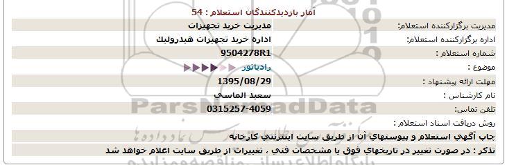 اداره برگزارکننده استعلام: اداره خرید تجهیزات هیدرولیک