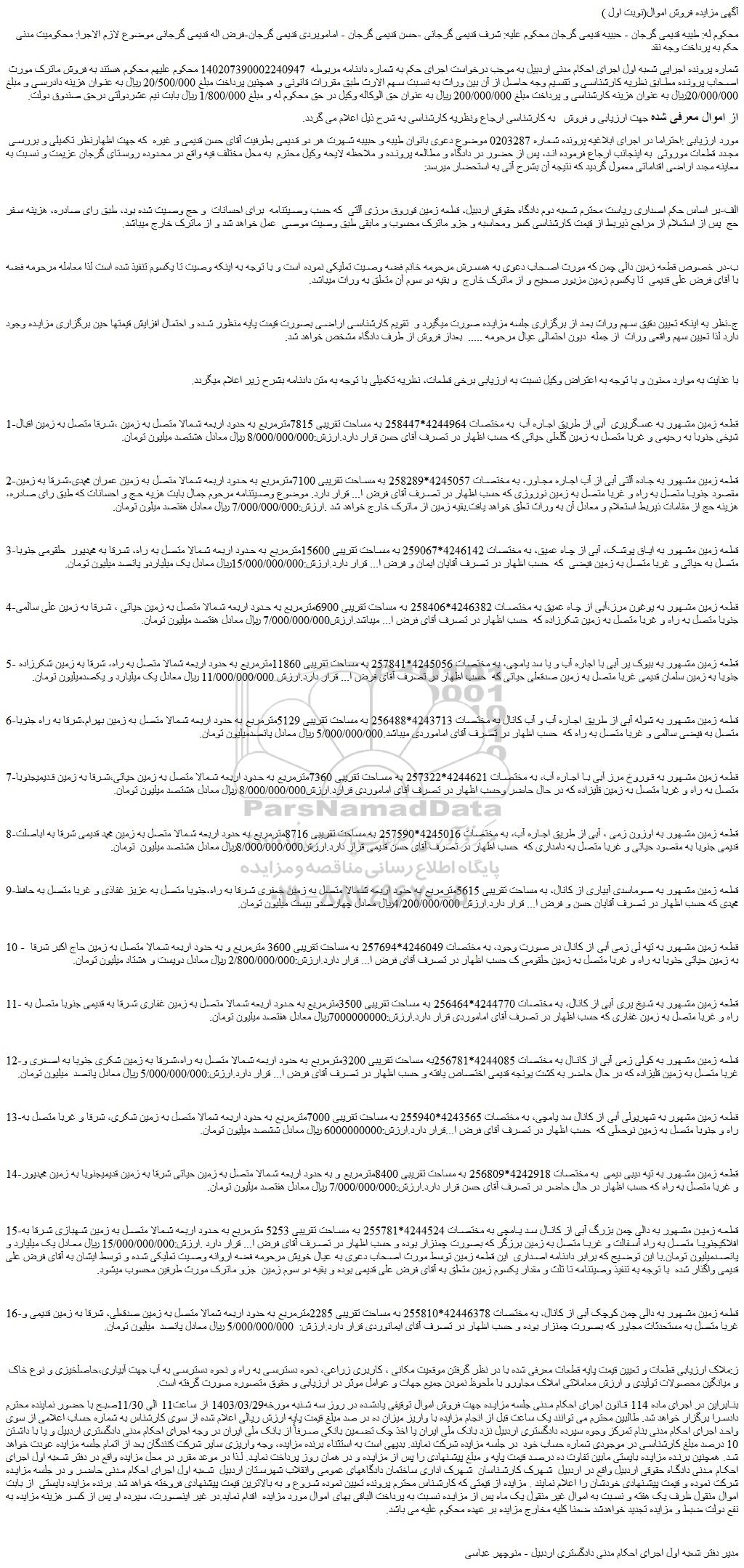 3 مزایده فروش فوق العاده املاک و مستغلات  9807003 1404/08/14 new not special not payed مازندران