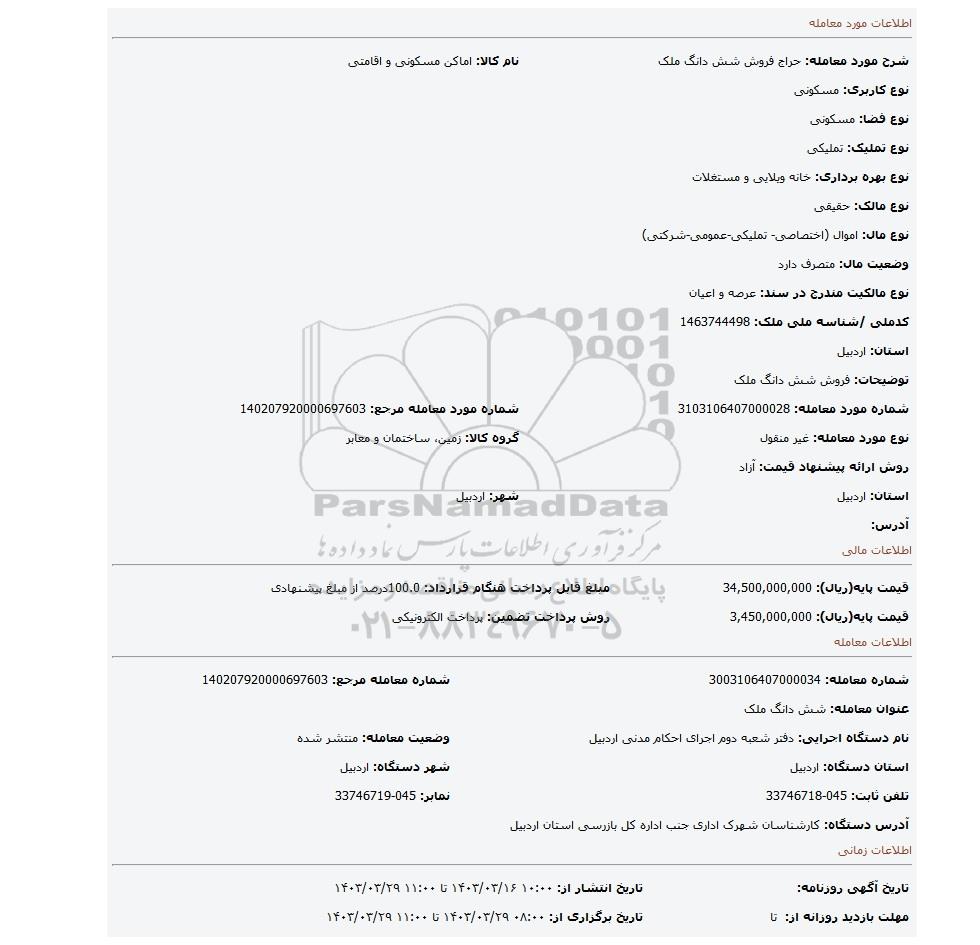 9 مزایده مال غیر منقول 9635252 1404/07/10 new not special not payed گیلان