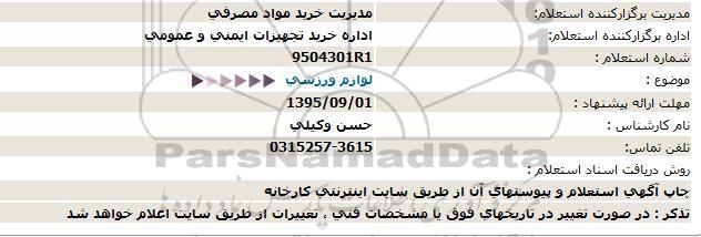 اداره برگزارکننده استعلام: اداره خرید تجهیزات ایمنی و عمومی
