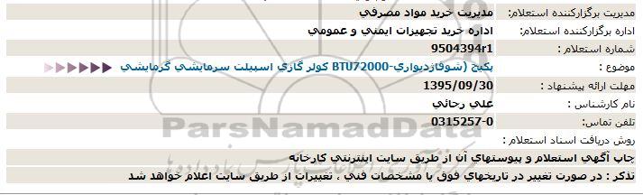 اداره برگزارکننده استعلام:     اداره خرید تجهیزات ایمنی و عمومی