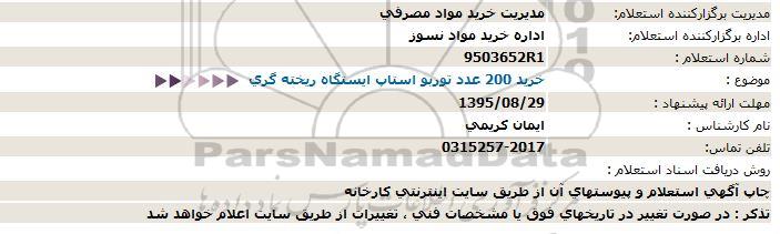 استعلام خرید 200 عدد توربو استاپ ایستگاه ریخته گری , استعلام , استعلام خرید 200 عدد توربو استاپ ایستگاه ریخته گری