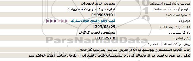 استعلام گیت والو وفلنچ فولادسازی, استعلام گیت والو وفلنچ فولادسازی