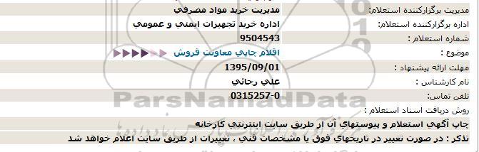 اداره برگزارکننده استعلام: اداره خرید تجهیزات ایمنی و عمومی