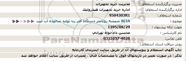 اداره برگزارکننده استعلام: اداره خرید تجهیزات هیدرولیک