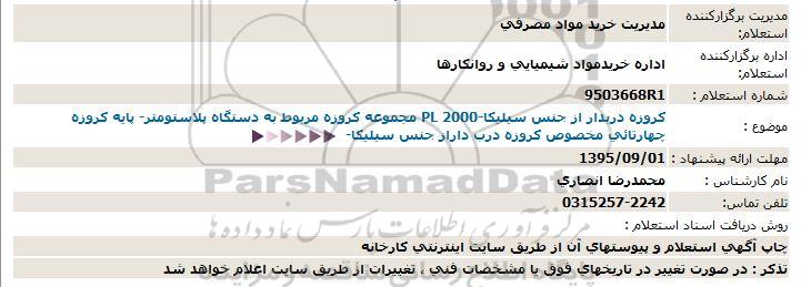اداره برگزارکننده استعلام: اداره خریدمواد شیمیایی و روانکارها