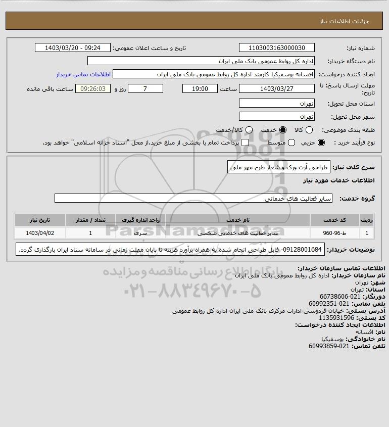 نام دستگاه خریدار:اداره کل روابط عمومی بانک ملی ایران