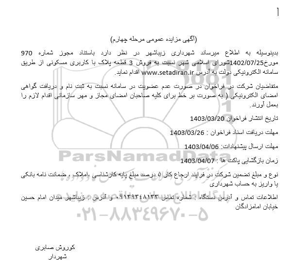 اگهی مزایده عمومی مرحله چهارم ؟