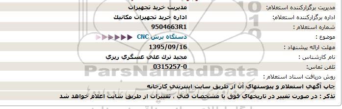 استعلام بها و موضوع استعلام استعلام , استعلام دستگاه برش CNC به اطلاع کلیه شرکتها و افراد متخصص واجد شرایط میرساند، آگهی گذار در نظر دارد از طریق استعلام بها، نسبت به انتخاب و دریافت پیشنهادات اقدام نماید. این استعلام با کد آگهی ثبت شده در سامانه خبرگزاری پارس نماد : 757260 منتشر شده است. مشخصات استعلام : تاریخ شروع استعلام: 1395/09/01 آخرین مهلت ارسال پیشنهاد قیمت : 1395/09/16 و محل اجرای پروژه : استان اصفهان میباشد. استعلام قیمت مورد درخواست : استعلام , استعلام دستگاه برش CNC با دستهبندیهای تخصصی و گروه های مرتبط : دستگاه جوش و برش, تجهیزات و ماشین آلات صنعتی, استعلام اطلاع رسانی میگردد.