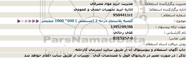 اداره برگزارکننده استعلام: اداره خرید تجهیزات ایمنی و عمومی