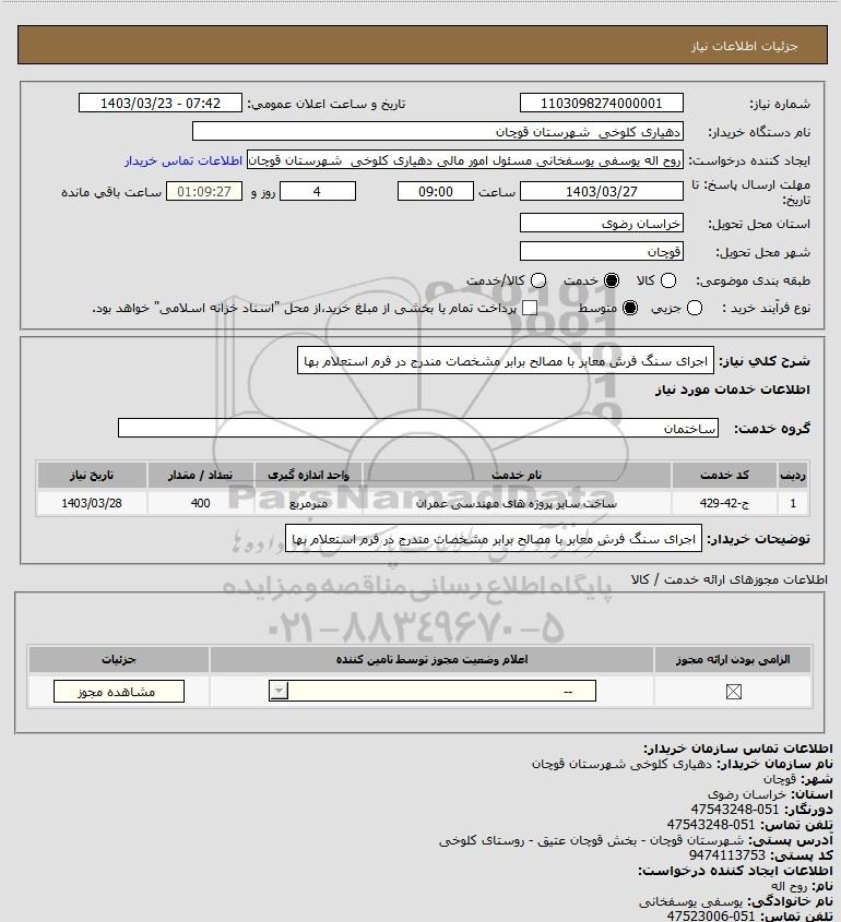 نام دستگاه خریدار:دهیاری کلوخی شهرستان قوچان